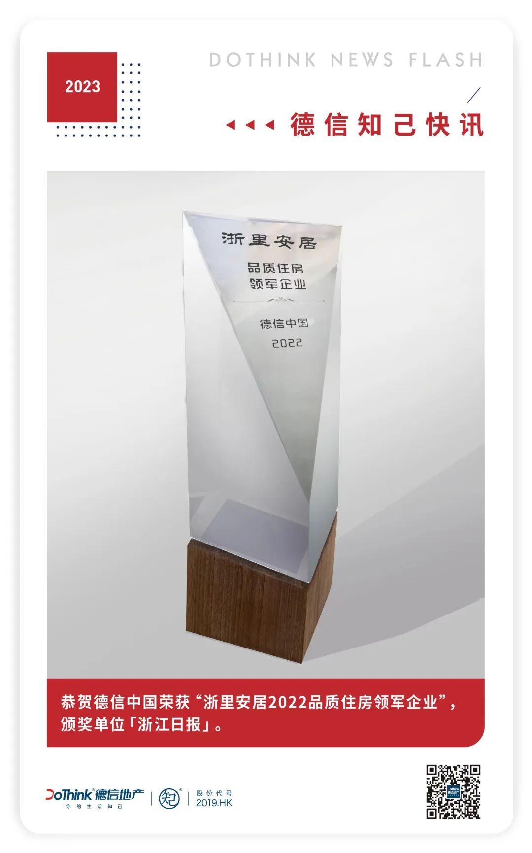 喜报!德信中国荣获“浙里安居2022品质住房领军企业”